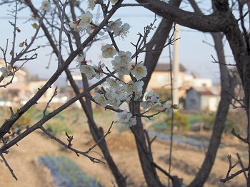 はてさて、どぅしたものか…今度は畑の草取りもしなくては…その前に、まずは朝食を…と、畑を出ようとしますと眼に入りましたのが梅の花。