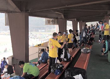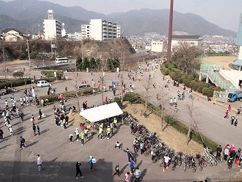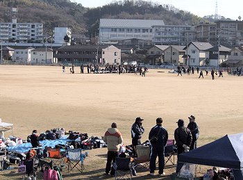 こんな様子を画像に納めながらノンビリと見物となりました(^.-)☆それから場所を移動し、芦田川の土手の市民球場前辺りでの応援です。