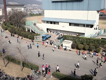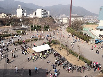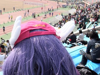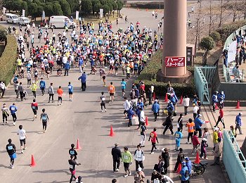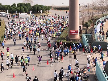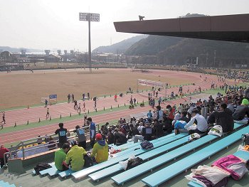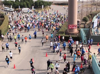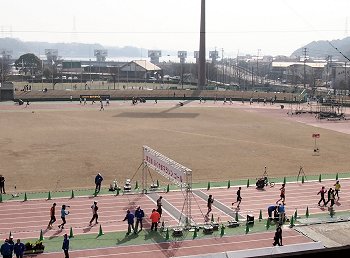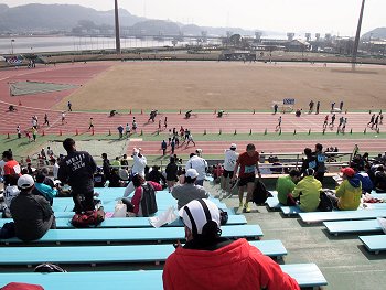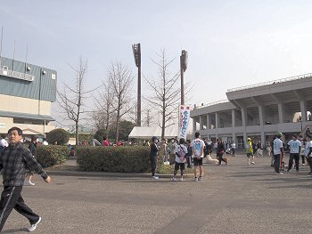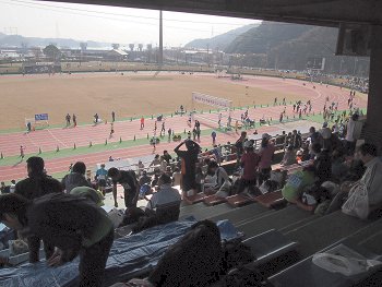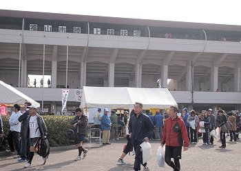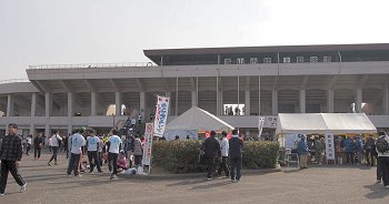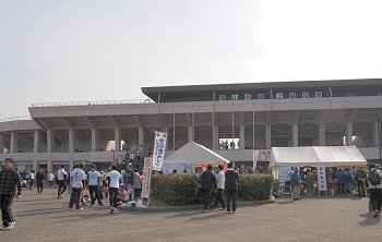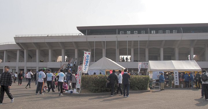 が、今回は何にも予定がありませんでしたから、初めてマラソン大会見物となりました(^_^)vハーフマラソンのスタートがA.M.9:35でしたから、9:00前に我が家を出まして陸上競技場へ。