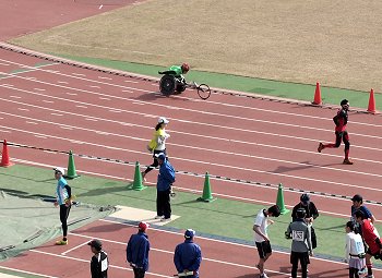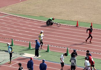 そんな光景をまずはパチリ(^.-)☆そして、そのうち車いすランナーの皆様がスタートとなりました。