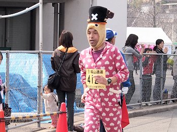 この方々を拝見しておりまして、GONsanも、ふと考えてしまいましたよ。今度マラソン大会にエントリーする時には「被り物で出よう!!」と(^_^)v自分自身が楽しく走りますのもイィのですけど、応援・見物しておられます方々に微笑ましさ・楽しさを抱いて頂くのは実に素晴らしいものなんだ…と、GONsan初めて感じてしまいましたねぇ〜