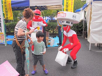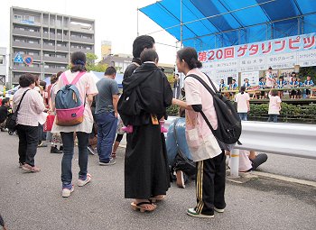 メインステージに眼を向けます観客の中には様々な方々がおられまして、中にはこんな方も(^.-)☆腰に刀を差し、お子様を抱かれました男性が。