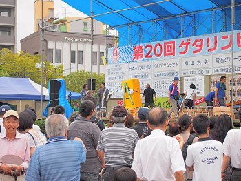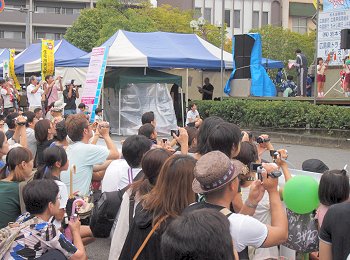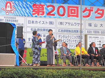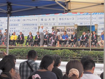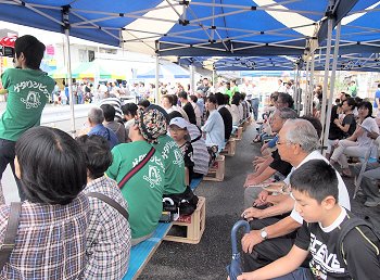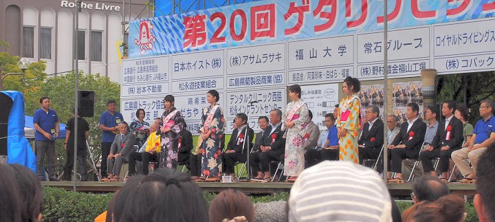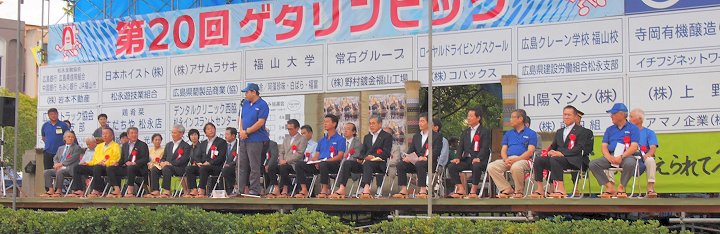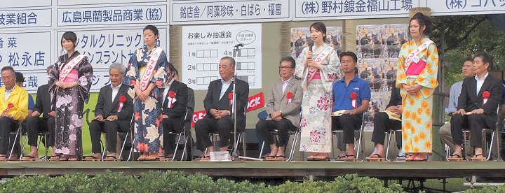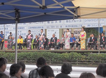 我が家から松永駅まで30分もみておけば余裕でセーフと思いましたら、ピッタシ30分は要しました(^-^)松永駅北口付近に駐車し急いで駅構内を駆け抜けて、駅南口のメインステージに到着しますと、丁度開会式が始まったところでありました。