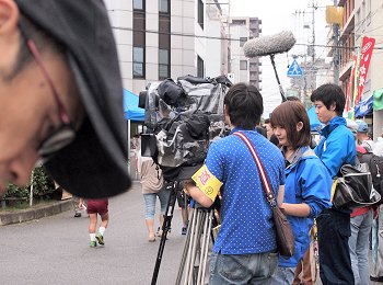 そして、露店が途切れました辺りでは、何やら開催されておりました(^.-)☆どうやら「ゲタでゴザール」の競技の真っ最中。