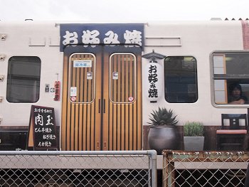 暫くステージを見つめておりまして、一服でもしようかと何気なく後方を振り返ってみましたら、なんと線路上にお好み焼き屋に出現です(^.-)☆