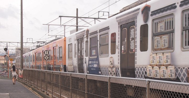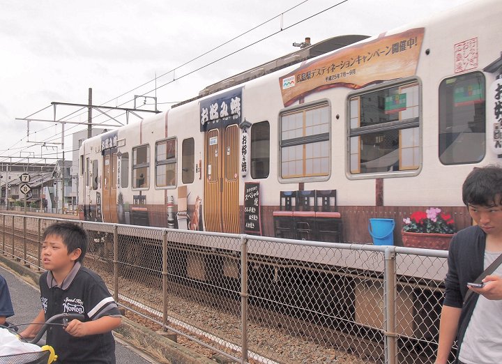 で、よくよく見てみますとJRの列車でありました。そして、車体には「広島県デスティネーションキャンペーン開催中!! 平成25年7月〜9月」の記載が。