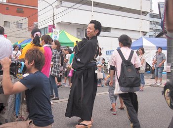 この男性を真正面から拝見しますと、腰辺りには「龍馬」の名札が(^-^;どんな方なのかGONsanには知る由もありません。が、わざわざこんな格好をしておられますのですから、その内にこのステージに立たれますのかも…そんな事はさて置きまして、メインステージ前から離れまして、暫し露店を楽しみながら散策です。