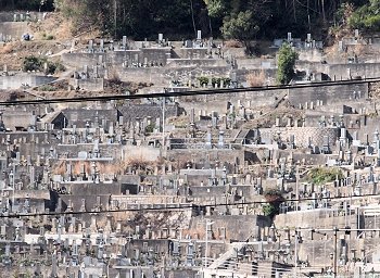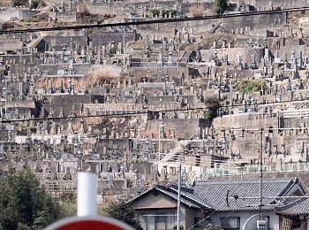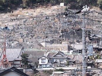 当時、遠足で出かけまして、レンズの大きさに大感激した記憶が蘇ってしまいます。こぅしてズームを効かせて撮りました画像を眼にしていますと、竹林寺の山頂がこの墓地から見えますのが不思議に感じられてなりません。