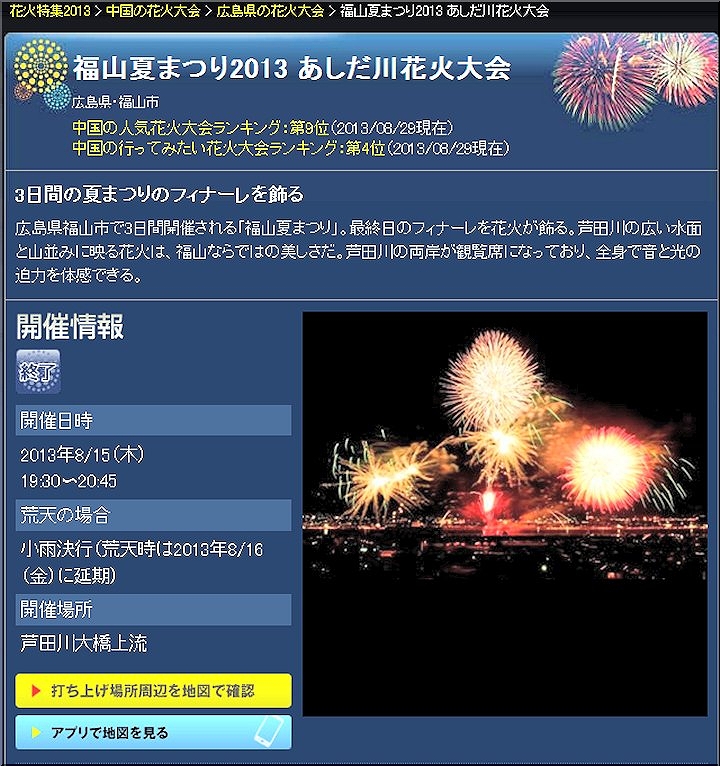 とは言いましても、芦田川花火大会の様子はお分かり頂けるものと思います。それでは、今年もまた画像で「芦田川花火大会」をご案内させて頂きたいと思います(^-^)//"