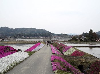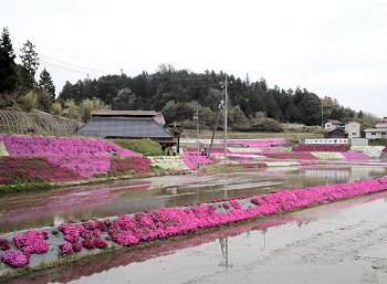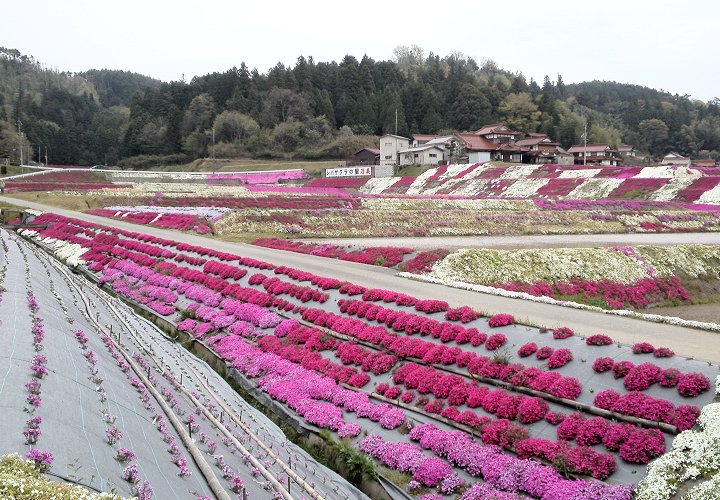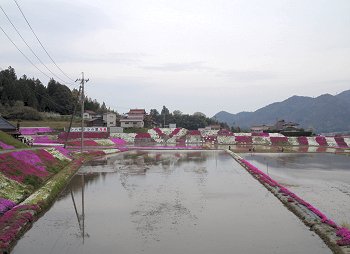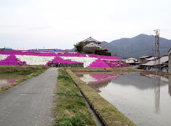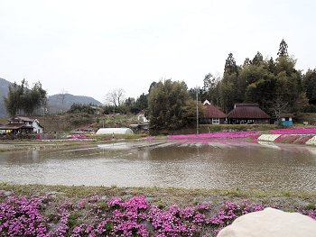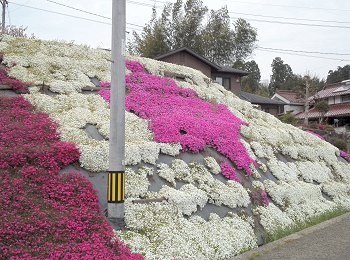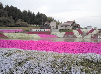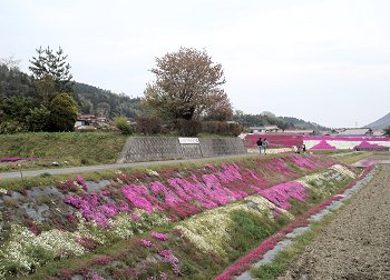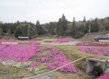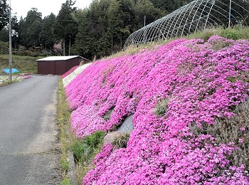 国道375号と県道29号の交差点付近に農家の人たちが、虫除けにと始めた畦に芝桜を植えたのが始まりだとか聞いたことがあります。