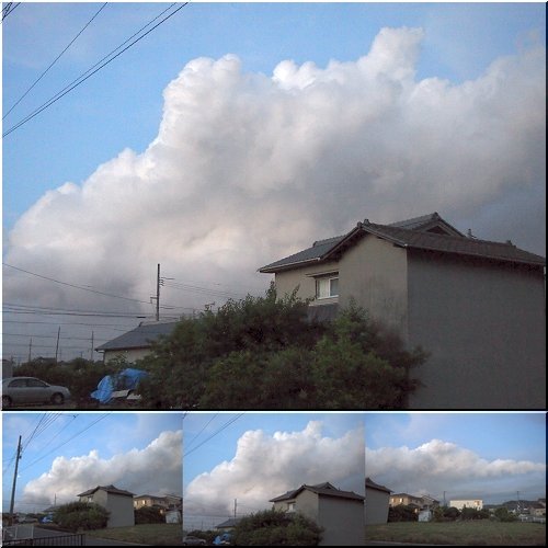 急いでカメラを持ち出し撮りましたのがこの3枚の画像。地震雲でもなさそうでしたが、仲々面白い雲ではありました(^-^)//"