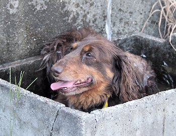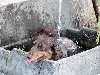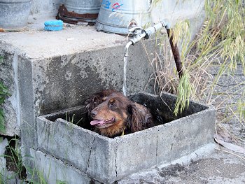 GONsanの傍らでだらしなく居眠りをしておりましたゴンchanも、暑さを避けていつの間にかイチジクの木の下へ退避。