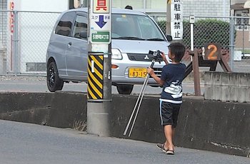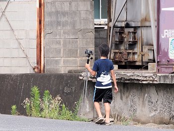 7/6(土)のA.M.9:00前頃でしたか…職場の前で貨物ヤードに眼を向け一服しておりましたら、三脚にビデオカメラを取り付け足早に急ぎます小学生が…
