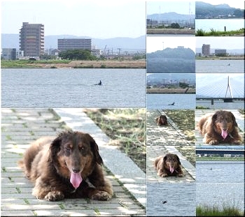 もぅ日中の散歩は、ゴンchanの為にも避けました方がイィのかも…芦田川川面に眼を向けますと、ボートを楽しむ若者がお一人。