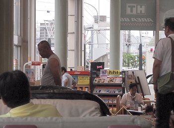 すると、GONsanが携帯を取り出すやいなやGONsanの方向に鋭い視線を向けられました上下とも黒っぽい服装の男性お二人。