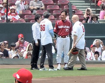 星野監督と談笑していますのは、なんと、あの広島カープ初優勝時の「ホプキンス選手」じゃぁないの!!