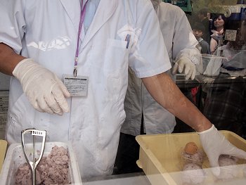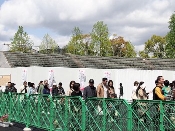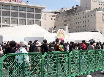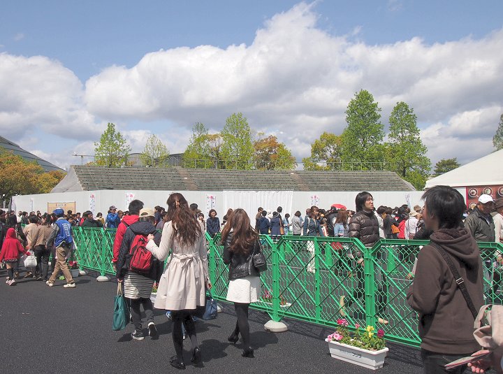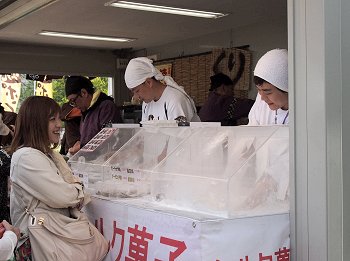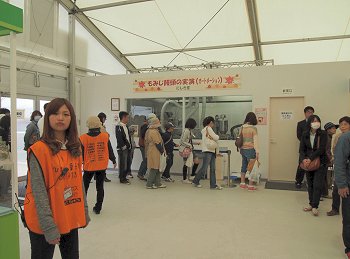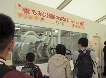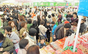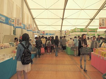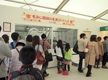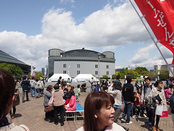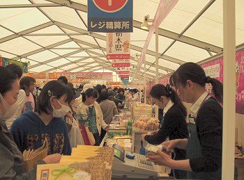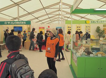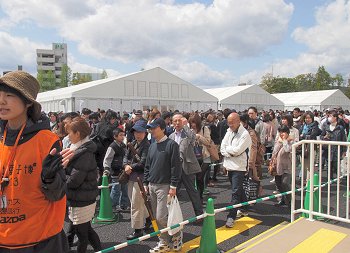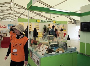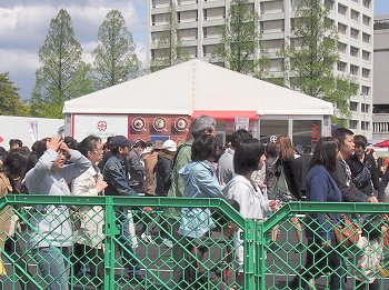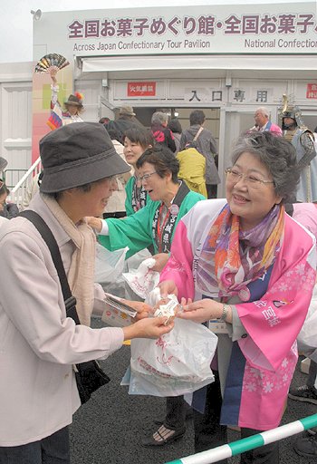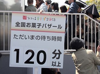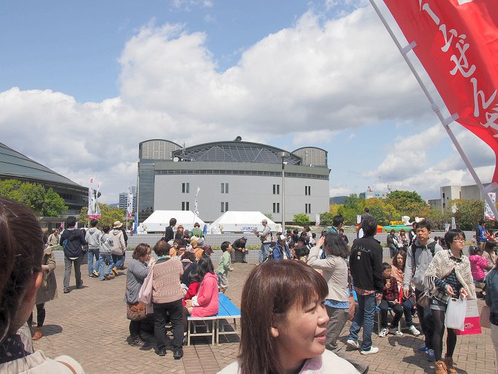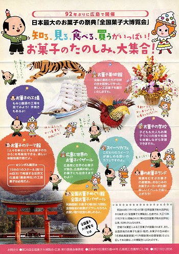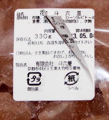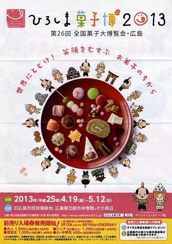 こんな調子で大勢の入場者の列に随分疲れてしまいましたけど、「ひろしま菓子博2013」の雰囲気程度は味わう事が出来ました(^.-)☆広島に出掛けます前に眼を通しました中国新聞には、こんな記事の掲載がありました。■菓子博、初の週末にぎわう--- 2013/04/21 中国新聞 ---全国菓子大博覧会(ひろしま菓子博)は20日、開幕後初めての週末を迎えた。広島市中区の会場には、初日の約2倍に当たる約2万4,500人が訪れ、人気パビリオンでは入場まで最長1時間待ちの行列ができた。雨が振る中、全国の菓子を販売する「全国お菓子バザール」では、入場の順番を待つ家族連れたちが並んだ。「普段買えないお菓子が手に入ると思えば、寒い中で並ぶのも苦じゃない」と倉敷市の主婦石井奈保美さん(51)。東北や関東地方の和洋菓子計10点を買い求めた。学生と業者が共同で考案した、広島県内産レモンを使った菓子のコーナーも人気を呼んだ。この日は、土日曜日と祝日に限り、閉場時間を普段の午後6時から同8時まで延ばす夜間入場も始まった。午後5時以降に入場すると料金は当日券の半額の千円になる。初日の午後6時以降の入場者は約800人。…と、こんな記事が(^.-)☆それから数日後の記事には、こんな哀しい内容のモノもありました(^-^;■菓子博に賞味期限2重貼り品--- 2013/04/25 中国新聞 ---全国菓子大博覧会(ひろしま菓子博)に出店している京都市の豆製品販売「斗六屋」が、甘納豆の品質表示ラベルの上に、賞味期限を引き延ばす形の別のラベルを貼って販売していたことが24日、分かった。商品名は「花斗六豆」。量り売り用のビニール袋に貼られた古いラベルの賞味期限は5月4日と記載。上から貼ったラベルは5月20日となっていた。福山市の自営業男性(42)が23日夕、パビリオン「全国お菓子めぐり館」の近畿ブロック内にある同社のブースで、ビニール袋に詰め並べられていた商品を購入した。24日午後、ラベルの2重貼りに気付き、実行委員会に電話で問い合わせた。実行委によると、その後、スタッフが同社ブースに駆け付けて確認したところ、同社の販売員が2重貼りを認めたという。他に同様の商品があるか、どうかは確認していない。同日夜、男性宅を訪ねて謝罪した同社の近藤照明社長は「京都の工場で製造している。ラベル貼りは手作業。作業員のミスではないかと思う。原因を調べる」と話した。男性は「食べ物を取り扱う大きなイベントだけに信じられない」と憤る。実行委は25日は同社の販売を禁止し、全出店者に注意を呼び掛ける。…と、こんな記事も。う〜ん、食べ物だけに、売られる側も買われる側も、何かと大変です。斗六屋sanの意図的な行為では無いものと思いますけど、誤解を招きますような事態は細心の注意を払って防ぎませんと…