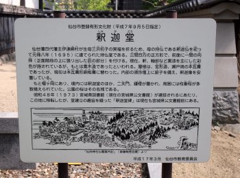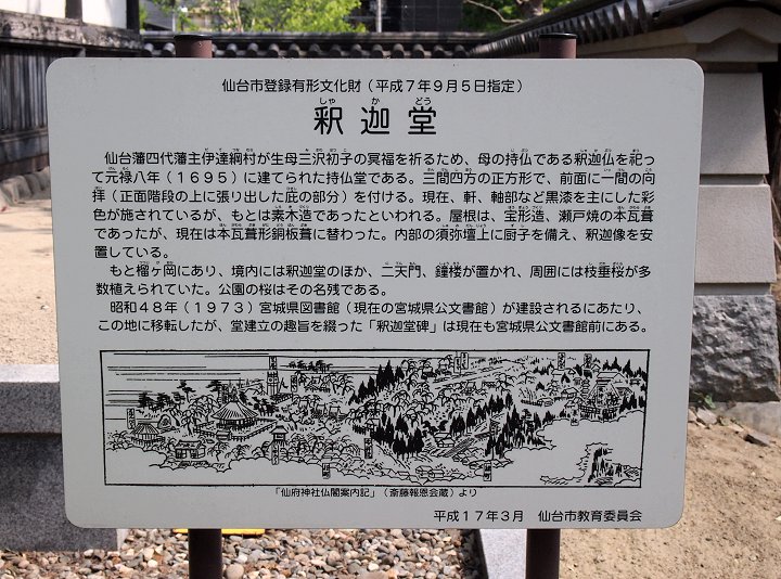 ■釈迦堂(五重塔の右側の建物が「釈迦堂」です)当初は、みやぎNPOプラザ敷地内に、仙台藩四代目藩主伊達綱村が生母三沢初子が没して10年目に建てたという「釈迦堂碑」がありましたようですけど、いつの日か宮城野区榴岡4丁目の孝勝寺に移されましたとか…釈迦堂は、仙台藩四代藩主の伊達綱村公が生母三沢初子の冥福を祈るため、釈迦仏を祀って1695(元禄8)年に建てられた持仏堂です。