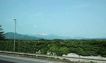 その途中、何と言います山か分かりませんけど、頂きには残雪が…この日は少々暑さも感じます気温でありましたから、残雪の景観がヤケに清涼感を抱かせてしまいました(^.-)☆