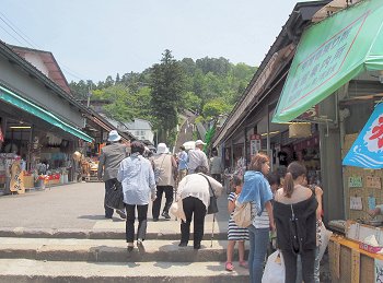 山のふもとには土産屋が並ぶ。この土産屋一帯は、昔から存在し、無料の看板で駐車場へ誘うものの一定の土産物屋で買い物を迫る「買うように迫る商法」とよく言われ、強烈な誘いで有名だ。山へ登るのには2つのコースがあり、徒歩で登るコースと、エスカレータで登るコースがある。(後者有料)中腹には、日本では大変珍しい木造建築物栄螺堂(さざえどう)(旧正宗寺三匝堂)がある。上りと下りで同じ道を通らず抜けられるという仕組みで、国の重要文化財に指定されており、これ目当てで観光に来る客も多い。頂上からは会津若松市内が一望できる。テレビ朝日系ドラマ「白虎隊」のロケ地でもある。