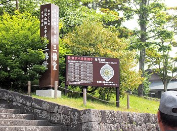 三仏堂の前には、推定樹齢500年という、天然記念物に指定されている「金剛桜」(こんごうざくら)が植えられています。三仏堂の内陣には、日光三社権現本地仏(千手観音・阿弥陀如来・馬頭観音)という三体の大仏さま(高さ8.5メートル)と、東照三社権現本地仏(薬師如来・阿弥陀如来・釈迦如来)という掛仏の、2組の三尊仏がご本尊さまとしてお祀りされています。◇「三仏堂」 保存修理のお知らせとお願い三仏堂は、約50年ぶりの大修理(平成19〜30年度・予定)が始まり、一部が仮囲いで覆われたり、通行場所が制限されております。