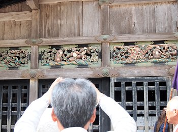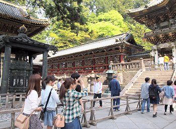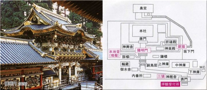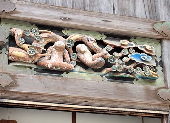 なかでも子供時代を表した三猿の彫刻が有名。悪いことは、見ざる・言わざる・聞かざるという意味が込められている。