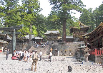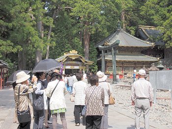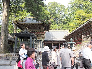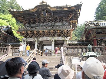◆陽明門東照宮見学のハイライトである陽明門は、高さ11.1m、正面7m、側面4.4mの全ての面に江戸初期の装飾技術を集結させた彫刻を施している。