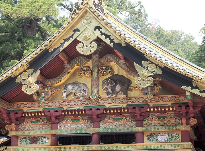 そうぞうのぞう東照宮境内にある三神庫[さんじんこ](重要文化財)のひとつ、上神庫[かみじんこ]の妻に施された彫刻が東照宮三彫刻の一つ想像の象。