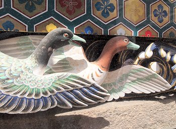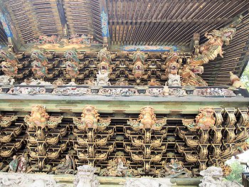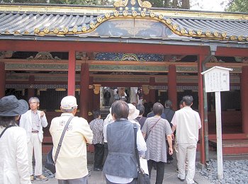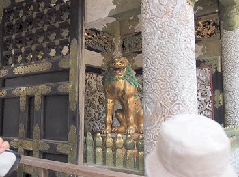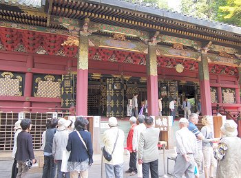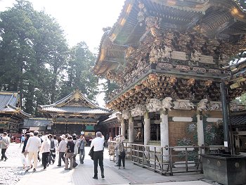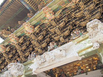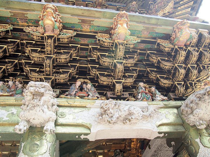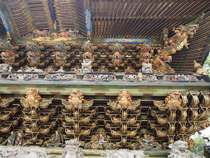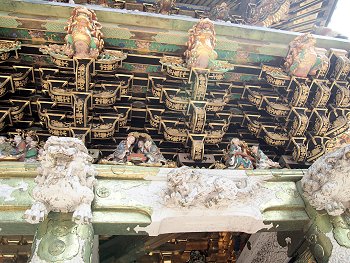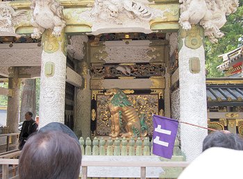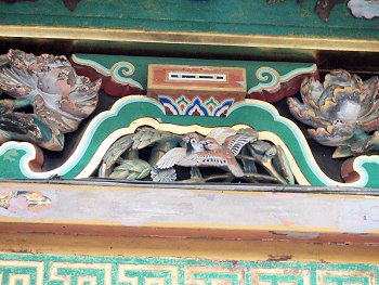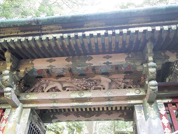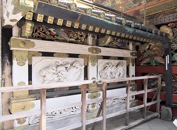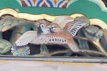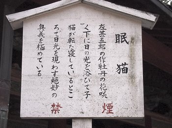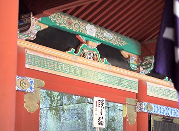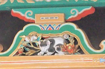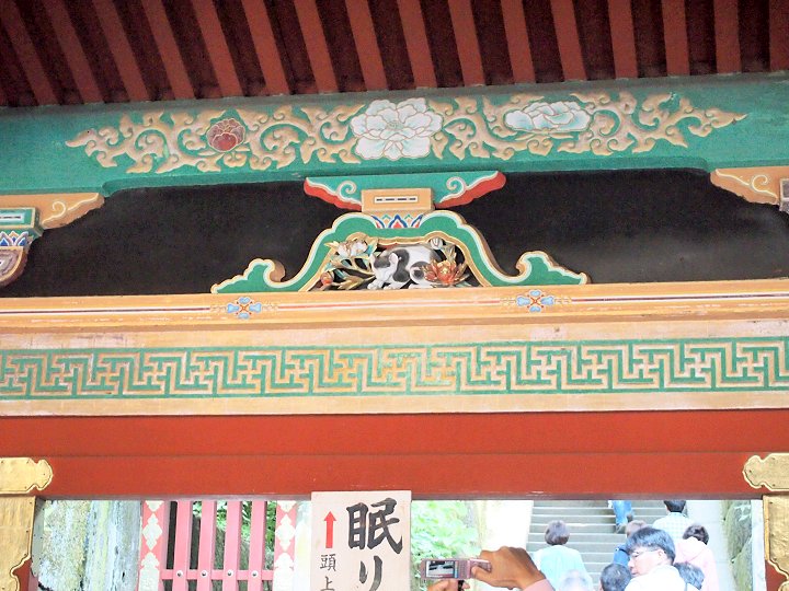 ●眠り猫(ねむりねこ)真裏に雀(すずめ)の彫刻東回廊の奥社(おくしゃ)参道入り口にある。左甚五郎(ひだりじんごろう)の作と伝えられ、東照宮の数ある彫刻のなかで最も有名な彫刻だ。眠り猫の真裏に雀(すずめ)の彫刻がある。猫が起きていれば雀は食われてしまうが、東照宮では猫も居眠りして雀と共存共栄。戦乱が治まり、平和な時代がやってきたことを表しているという解釈もある。
