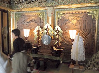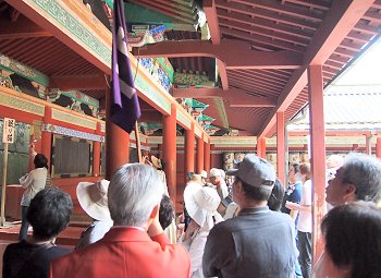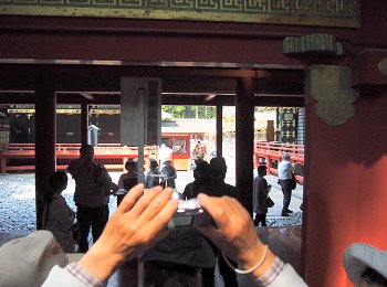 ●将軍着座の間(しょうぐんちゃくざのま)18畳の将軍着座の間。ケヤキの1枚板の額羽目には寄せ木細工の鳳凰の彫刻がある。拝殿に上がれたのは大名以上、しかもそれぞれの格式によって拝礼の位置が厳格に決められていた。