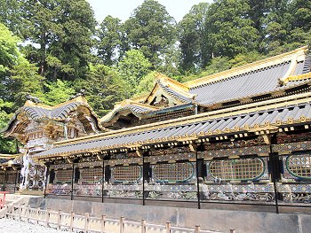 ◆回廊・国宝に指定されている回廊回廊は陽明門から左右に延びる廊下のことで、全長220メートルもあります。陽明門を中心に本社、祈祷殿、神楽殿、神輿社をコの字に囲んでいます。