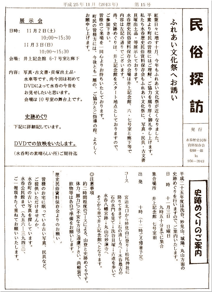 11/2(土)〜11/3(月)は「水呑学区ふれあい文化祭」が開催で、GONsanはいつものように11/3(日)の「史跡巡り」に参加する事に致しました(^_^)v