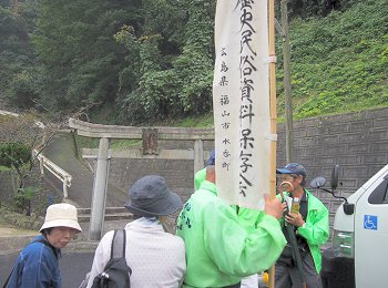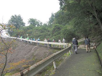 2台のマイクロバスに分乗し、妙見神社北側参拝道上り口へ。南側にも上り口はありますけど、こちらの方が急勾配でも距離的に短いですから…