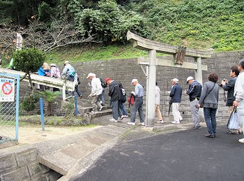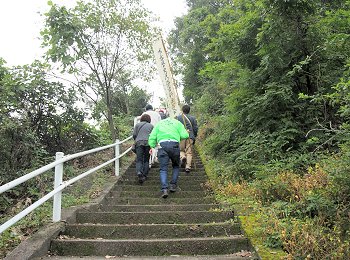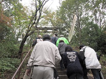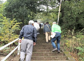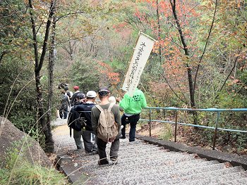 出発時には分かりませんでしたが、妙見神社への石段を登っておりましたら気付きましたネ(^.-)☆GONsanは皆さんの様子を画像に納めながらノンビリと最後尾を登っておりました。日頃ジョギングで鍛えておりますから、この程度の急勾配でも苦になりません。