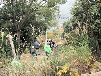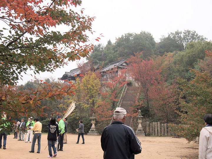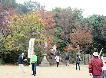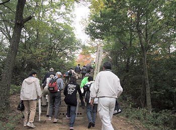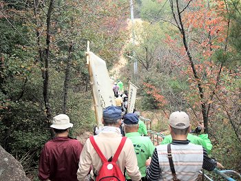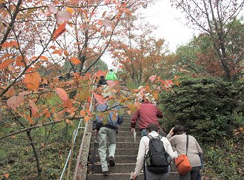 この史跡巡りへの参加メンバーは、GONsanも含みましてどちらかと言いますと高齢者の方々ばかり。本当に、そぅなのであります(^.-)☆階段を下りながら周辺の景観に眼を向けますと、紅葉が始まったばかりですけど、それなりにキレイ(^_^)v