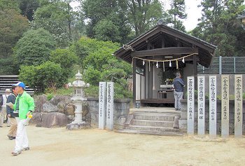 法界碑の横に(洗谷の名号碑)南無阿弥陀仏と刻んだ碑がある。浄土真宗では南無阿弥陀仏と唱えるが、これは海よりも深くという意味をもって仏の加護願うものであると云われている。この念仏を法名と云う。(国語辞典より)