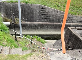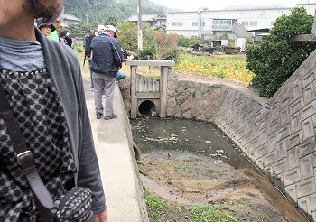 この樋門は洗谷地区水田の排水用として作られたものであるが、時代の流れとともに宅地造成や道路の拡張により次第に不要になってしまった。