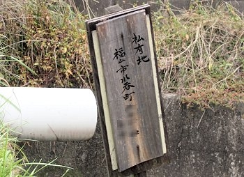 市道と、その下の用水路との間に存在します細長い土地…ふ〜ん、ここは私有地なのですねぇ〜この看板が眼に入りませんと、そのまま気付かずに通り過ぎたのかも分かりません。で、さっそくパチリ(^.-)☆