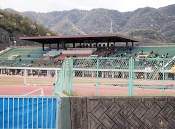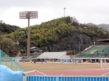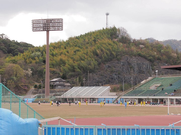 普段はあまり見かけませんけど、3人の男性の方が花見も兼ねまして散策中。皆さん、よくご存じなんですねぇ(^_^)v陸上競技場では、サッカーの試合が開催中。強風の下でもなんのその。