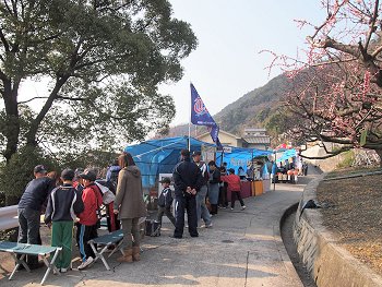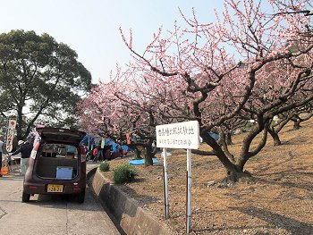 ですが、満開には未だ少し早いのでは…との想いもありましたけど、出かける事に致しました。開催のA.M.10:00に合わせて出かけますと駐車場が一杯で入れないかも分かりませんので、A.M.9:00前にいざ出発となりました(^_^)v高島小学校のグランドが臨時駐車場ですけど、開催1時間前ですから楽々駐車。