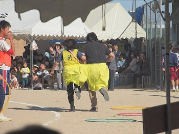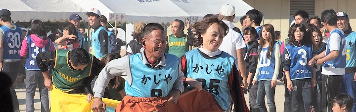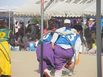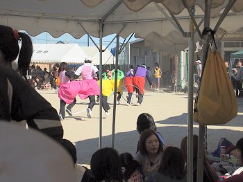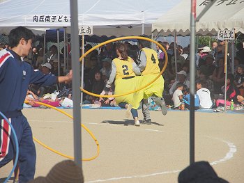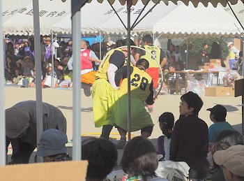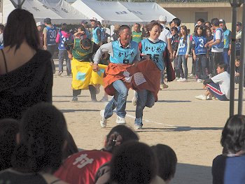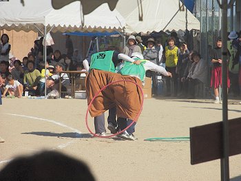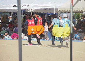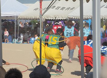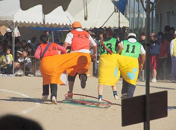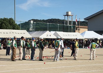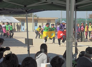 GONsan達が競技を終えますと、次のグループの玉入れ競技。最終的には、籠に入りました数で最終的な順位が決まります。