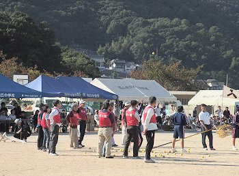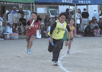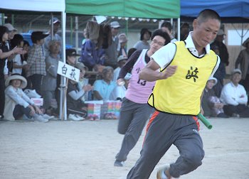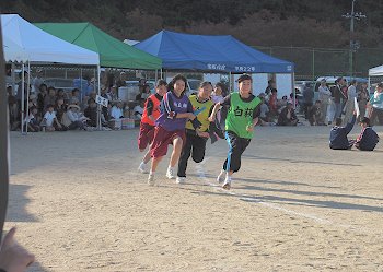 女子に続いて、いよいよ学区民運動会最後の競技であります「年齢別リレー」男子の部。
