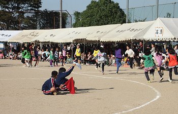 玉入れ競技が終わりますと、後、残しますのは「年齢別リレー」のみ。