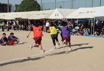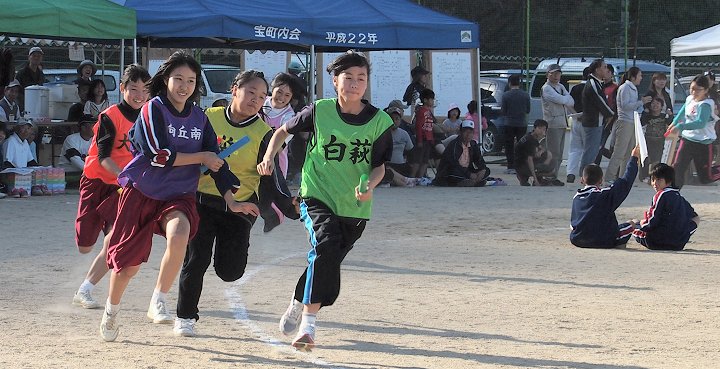 まず、先に女子の「年齢別リレー」から競技開始。