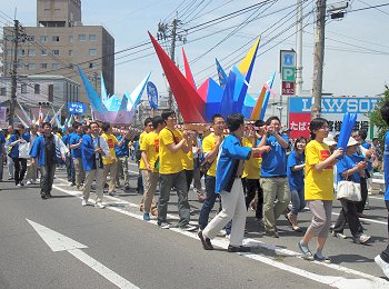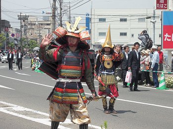 この武者姿の若者達は、福山市と姉妹都市関係にあります「岡崎市」からの参加のようですネ(^_^)v
