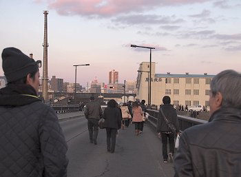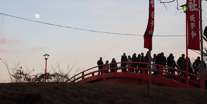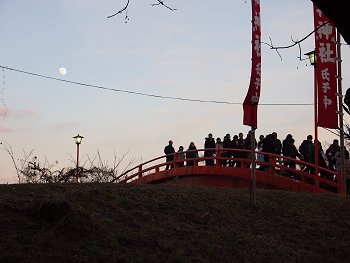 今からお詣りされます方々の列を横目に、法音寺橋を渡っておりますと、東方の空にはお月様が(^_^)v