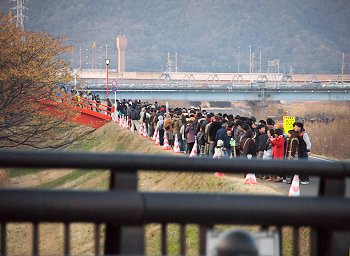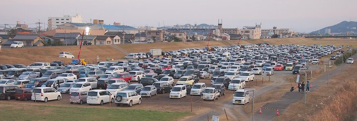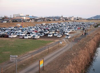 橋から見下ろします河川敷に並びます車も随分減少。
