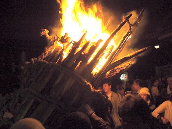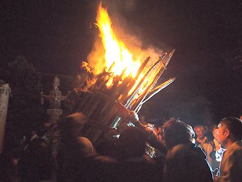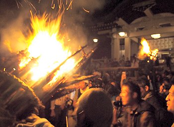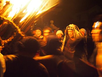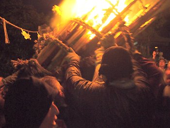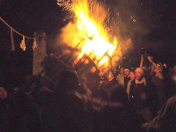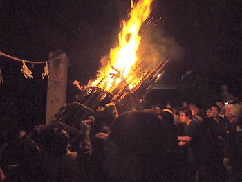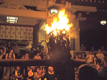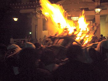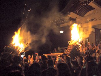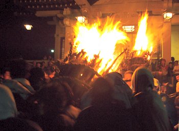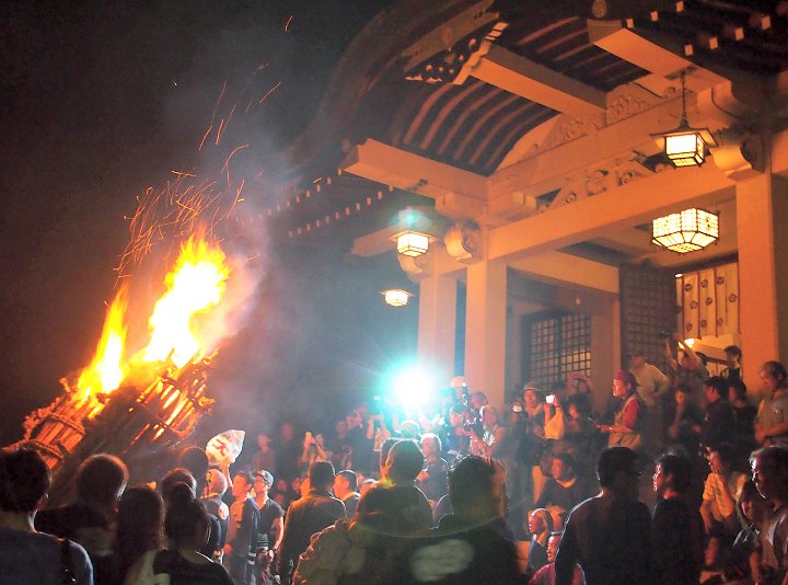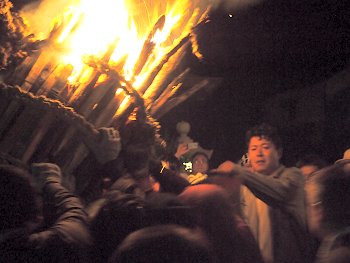大松明三体の内、二体目の本殿前への奉納がP.M.11:09でありました(^.-)☆