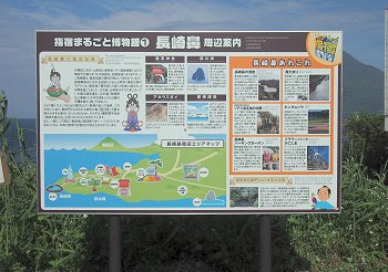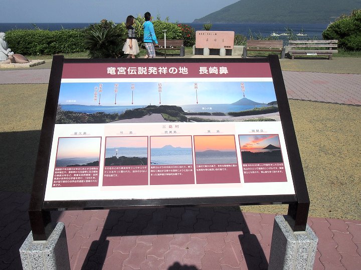 錦江湾に鼻のように突き出ました火山岩の景観を楽しみまして戻っておりますと、「竜宮伝説発祥の地 長崎鼻」と記載されました観光表示板が眼に入りました(^.-)☆