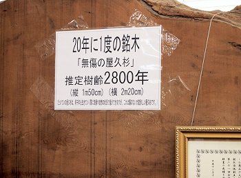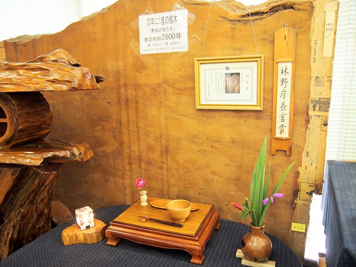 展示品の中には、林野庁長官賞受賞の「20年に1度の銘木『無傷の屋久杉』推定樹齢2,800年」と言うのも有りましたネ(^_^)v